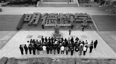 每逢周末,南華大學(xué)校園內(nèi)“兩彈一星”功勛人物張愛萍、王淦昌的銅像旁便圍滿了人。這是該校“兩彈一星”精神研究會的師生們在學(xué)習(xí)探討“兩彈一星”精神。