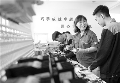 6月13日,秦皇島工業職業技術學院的老師(右二)在實訓室指導電工專業學生練習接線。近年來,該校以促進就業為導向,通過引企入校、引校進企、產學聯動等方式與企業對接開設“人才訂單班”,雙方在人才培養等多方面開展合作。