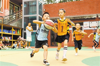 6月14日,重慶市沙坪壩區橋北幼兒園的小朋友們在上籃球課。該園秉承“快樂運動”特色,開設特色籃球、體操等課程,并組建幼兒籃球隊,讓孩子們從小就體驗運動的魅力和快樂。孫凱芳 攝