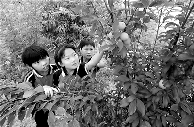 近日,湖北省十堰市竹山縣麻家渡鎮營盤河小學學生扛著鋤頭,拿著筐子,在老師的指導下,學習采摘辣椒、鮮桃等,忙得熱火朝天。營盤河小學一至三年級學生共37人、教師6名,是一所農村小規模學校。2021年10月,該校在校園閑置區域開墾出10多塊開展勞動教育的試驗田,建成占地1500平方米的“幸福農場”。