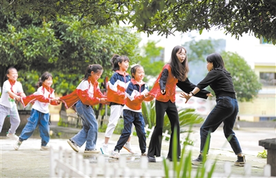 近日,在貴州省黔西市甘棠鎮聯新社區公益課堂上,志愿者和孩子們一起玩老鷹捉小雞的游戲。近年來,甘棠鎮依托村(社區)農家書屋,辦起假日公益課堂,通過招募黨員志愿者、大學生志愿者、社會專業人士,為留守孩子提供藝術輔導、讀書賞析、電腦講座、游戲等公益課程,讓孩子們快樂度過假日。周訓超 攝