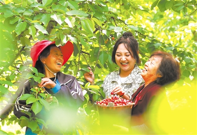 今年60歲的張魁英家有10畝櫻桃園、300棵左右櫻桃樹,是寨子村最早栽種櫻桃的人。“以前種的土櫻桃存放時間短、果形小,掙不上錢。多虧有科技特派員的技術指導,我們的品種也換了,不愁銷路。”盡管搶摘櫻桃很忙,但張魁英的臉上始終掛滿著笑容。