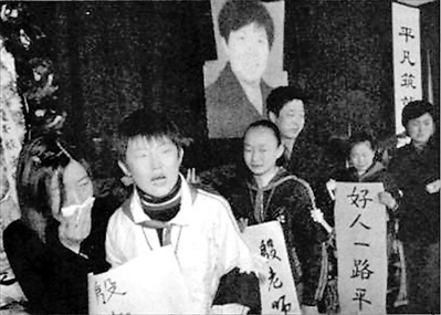 2005年3月31日中午,江蘇省金壇市城南小學52歲的女教師殷雪梅在學校門前,面對飛馳而來的汽車,張開雙臂,奮力將正走在馬路中央的6名學生推到路旁。學生獲救了,這位“當代歐陽海”式的好老師卻在醫院昏迷了5天后靜靜地離開了人世。