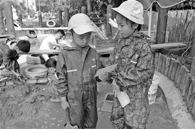 圍繞怎樣可以找到更多寶貝的問題,有收獲的8個孩子提出:“可以和好朋友一起合作找;在找到寶貝的地方,大家分頭找,還可以比賽……”沒找到的12個孩子則表示:“我們去他們找到的地方挖一挖,還可以給我們一點提示,就跟玩尋寶地圖一樣……”