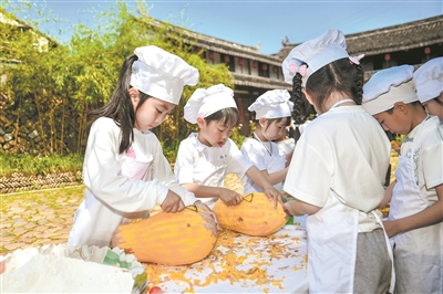 這樣的活動每月一次,教師回到幼兒園后梳理材料,歸納要點,優(yōu)化原先的“美食坊”課程并改了一個新名字“阿芳黃饅頭”。鄭倩倩發(fā)現(xiàn),在鄉(xiāng)村的現(xiàn)實場景中涌現(xiàn)出來的課程資源,真實、可親,改變了過去教師“拍腦袋”做課程的刻板模式,生活化、游戲化的目標(biāo)觸手可及了。