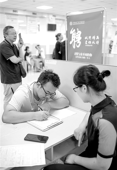 7月16日,在山西運城舉辦的2023年高校畢業生就業服務攻堅行動現場招聘會上,求職者咨詢崗位信息。 視覺中國 供圖