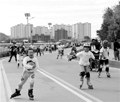 ③近日,河北省圍場縣舉辦第二屆“塞罕雛鷹”夏令營,2000余名學生參加。圖為孩子們在進行輪滑練習。趙曉光 攝