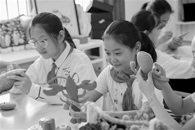 提升美育教學質量。學生在“誦讀經典”“品析詩詞”“書法藝術”“童心童畫”等課程中,用多樣的藝術表現形式表達豐富的內心世界,感悟語言美與文字美,發展藝術美與形體美。在研學拓展實踐、沉浸式勞動教育、探究科學奧秘等課程中發現、體驗、追求真實而多元的美,師生在課程中相遇、相伴成長,形成正確的人生觀與價值觀,達到潤物細無聲的教育目的。如學校開設水培種植與土壤種植相結合的勞動課程,以及“花生的奇思妙想”“蛋上生花”等家庭勞動等,實現家校協同育人,助力學生成長。“生活中不缺少美,我們賦予學生發現美的眼睛,把‘勞動最美麗’的種子播撒在學生的心里。”勞動課程負責人說。
