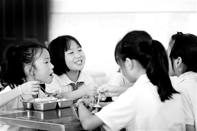 9月11日,江西省宜春市上高縣鏡山小學的學生正在享用營養午餐。近年來,江西省上高縣在全縣各中小學、幼兒園全面推進學生用餐關愛工程,統一標準配備小食堂,建立經費保障機制,確保學生吃得飽、吃得好。陳旗海 攝