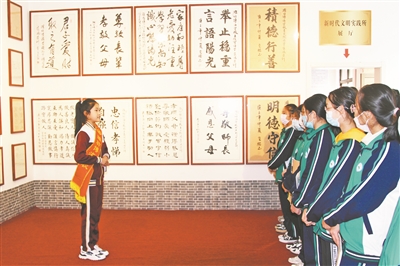 家風館的講解員都由學校學生擔任,孩子們熟練地介紹著館里展出的古代名人的家風家訓,還大方地向記者說起自己家的家風家訓。學校也會根據每個年齡段孩子的不同身心特點落實家風建設。學校一年級組的一位班主任告訴記者,有的孩子年齡太小,可能還不太理解“家風”等抽象的概念,學校就從生活細節慢慢幫助他們來理解和落實,比如教他們在學校主動和老師打招呼,給他們布置回家后做一件力所能及的家務,以感恩的心體會父母的付出和辛苦……當看到孩子們發生的點滴變化和家長們發自內心的感激,老師們也由衷地感到欣慰。