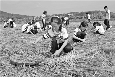 近日,湖南省洞口縣黃橋鎮(zhèn)中心小學(xué)組織學(xué)生到附近收割后的稻田里撿拾散落的稻穗,讓學(xué)生在勞動實踐中感受“誰知盤中餐,粒粒皆辛苦”的含義,培養(yǎng)學(xué)生們熱愛勞動、珍惜糧食、厲行節(jié)約的良好習(xí)慣。滕治中 攝