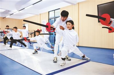 為進一步豐富社團活動形式,湖北省襄陽市紅光小學將擊劍項目納入學校社團活動課程,配備專業競賽級擊劍賽道和訓練器械及服裝,引入校外優質教練資源,培養擊劍人才。
