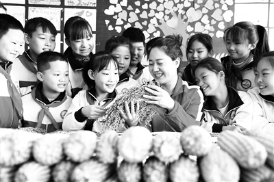 日前,河北省唐山市豐潤區左家塢小學教師在教學生辨識糧食。唐山各地幼兒園、中小學開展珍惜糧食、認識莊稼、體驗秋收等愛糧節糧主題活動,培養孩子們愛惜和節約糧食的意識。朱大勇 攝