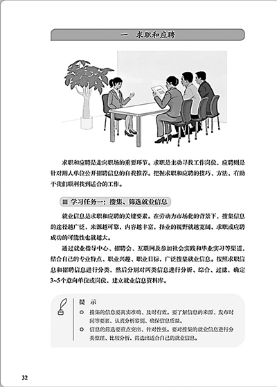 整套教材的編排,除基礎模塊上下冊外,還專門設置了職業模塊,體現了鮮明的職業教育特色。如職業模塊特別設計了“勞模精神工匠精神作品研讀”和“職場應用寫作與交流”專題。其中,“勞模精神工匠精神作品研讀”專題設置兩個文本單元和一個活動單元,既有反映普通勞動者、勞動模范依靠勞動創造幸福生活的優秀作品,也有革命導師闡述職業選擇的理論文章,還有圍繞“走近大國工匠”開展的學習活動。這些作品或活動有機融入了職業道德教育、科學家精神教育和勞動教育,旨在培育學生的職業理想、職業精神和崇尚勞動的價值觀念。“職場應用寫作與交流”專題包括兩個活動單元,每個單元分別安排了三項任務。每項任務通過具體的學習任務來完成,旨在培養學生的職業能力,增強學生的職業道德意識,為實現高質量就業和職業生涯發展奠定基礎。