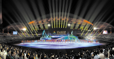 隨后,主題為“在青春的賽道上”的文體展演拉開帷幕。文體展演包括《青春的山河》《青春的接力》《青春的奔跑》三個(gè)篇章和尾聲《青春萬歲》,將運(yùn)動(dòng)項(xiàng)目、體教元素、文藝元素與廣西壯美山水、多彩民族、紅色文化、開放發(fā)展等元素有機(jī)結(jié)合。尾聲把綠色低碳的點(diǎn)火儀式與表演融合,并推出原創(chuàng)主題歌《以青春的名義》。