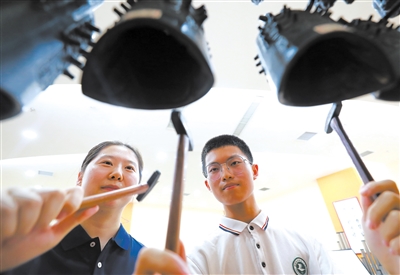 《大潮》《圣韻》《聞道》……在山東省濟南市歷城第二中學聞韶藝術館,每天下午5點到6點之間,伴隨著鐘鼓齊鳴,國樂團學生們準時開始高雅動人的國樂排練。與此同時,另一間排練廳傳出合唱團學生們優美細膩、充滿感情和力量的青春歌聲;在練功房,舞蹈團學生們和著音樂的節拍,或單人、或雙人、或多人,翩翩起舞;在陶藝館,隨著陶輪的快速旋轉,一件件充滿創意的陶瓷藝術品從學生們靈巧的手指間流出。