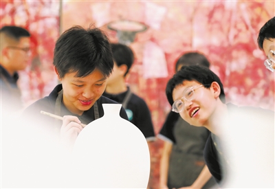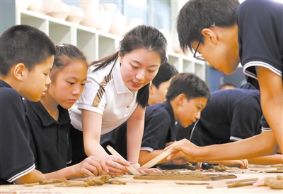 學校陶藝社團指導教師趙昱景介紹說,在陶藝館,既有陶藝社團的學生在創作陶藝作品,也有其他學生參加陶藝普及課程的體驗學習。陶藝是所有初二學生的必修課,初一學生的必修課還包括鋼琴和科技創新。學校開設這些課程,既是為了陶冶學生的情操,也是為了藝術、科技素養的普及。