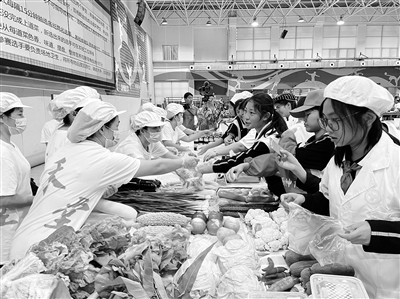 近日,廈門市蔡塘學(xué)校學(xué)生正在“買菜”。該校舉辦第三屆“食悅杯”家務(wù)勞動技能大賽,以班級為單位,設(shè)置兩葷一素自選菜烹飪、家鄉(xiāng)特色小吃烹飪和跟著主廚現(xiàn)場學(xué)藝、洗洗涮涮4個環(huán)節(jié),檢閱并培養(yǎng)學(xué)生的勞動技能。學(xué)校供圖