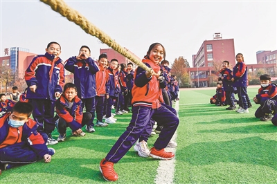 11月27日,山東省青州市十里小學學生開展拔河比賽。秋季學期以來,十里小學利用大課間、體育課等時間,組織開展拔河、跳繩等活動,讓孩子們在體育鍛煉和趣味游戲中增強體質(zhì),享受運動的快樂。