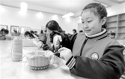 近日,江西省瑞昌市第六小學學生來到學校弘“遺”小作坊上特色興趣課。該校通過設置特色興趣課堂,將當地非物質文化遺產項目“瑞昌竹編”“瑞昌剪紙”等引入課堂,滿足學生多元化學習需求,讓學生近距離感受非遺文化魅力。通訊員 魏東升 攝