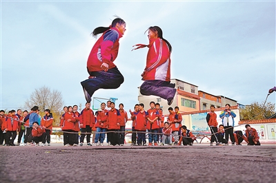 12月5日,湖北省十堰市鄖陽區柳陂鎮中心小學學生在進行趣味體育鍛煉。入冬以來,學校每天在課余時間開展跳繩、跳皮筋等豐富多彩的趣味體育活動,讓學生們在鍛煉身體的同時,體驗運動之樂。楊顯有 攝