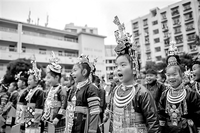 12月5日,在貴州省黔東南苗族侗族自治州從江縣丙妹鎮中心小學,侗族學生在演唱侗族大歌。當天,學校舉辦第一屆校園體藝節,學生們進行了民族文化展示、模擬斗牛展演、蘆笙吹奏等具有地方特色的民族文化展演。近年來,該校結合地方民族文化,將民族傳統文化引入校園,廣泛開展形式多樣的體育賽事和藝術類活動,讓學生在豐富多彩的活動中鍛煉身體,促進快樂成長。