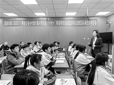 近日,黑龍江省雞西市第十八中學赴黑龍江省海倫市,開展“一對一”精準幫扶送教下鄉活動。圖為雞西市“國培計劃”送教下鄉優秀學科專家、雞西十八中語文教師張娜作為省派專家在海倫市第六中學開展送教援培、現場教研活動。