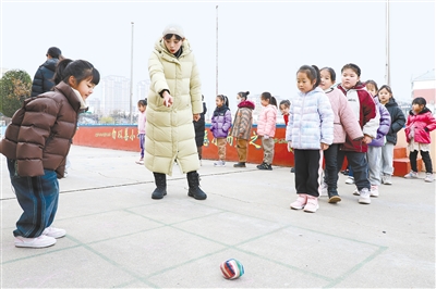 其次,學校充分利用有限的場地,開辟更多運動場所。體育組的教師們在教學樓之間的空地上畫了“跳房子”“木頭人”等游戲的線格,下課鈴聲一響,每個線格旁都圍滿了學生,10分鐘的小課間,也能玩得酣暢淋漓。