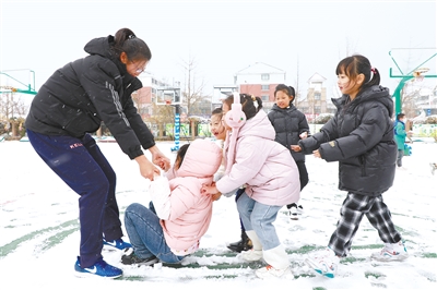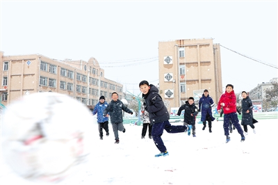 11月29日上午,山東省煙臺市牟平區第二實驗小學(以下簡稱“牟平二實小”)的大課間迎來了一場突如其來的大雪。教師們并沒有因為大雪而中止大課間活動,而是和學生一起享受這意外的驚喜。奔跑、追逐、歡呼,踢雪地足球、打雪仗、堆雪人……師生們在雪地上盡情玩耍,感受下雪帶來的無窮樂趣。