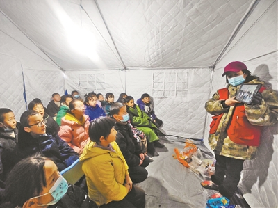 這樣的臨時“帳篷學?!?,全縣共有145個。臨夏州教育局為迅速恢復災后教育教學秩序,在積石山縣145個安置點開設臨時“帳篷學?!?,有計劃有秩序地開展教育教學工作和形式多樣的教育活動。