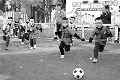 近日,福建省福州市直屏西幼兒園的孩子們在參加足球運動會。該園構建適宜幼兒成長的足球文化環境,促進幼兒身心和諧發展。楊競雯 攝