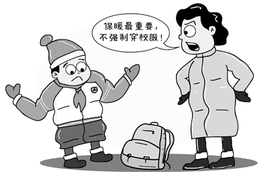 但四季有輪回,冷熱在交替,校服不大可能緊隨季節(jié)變化而頻繁更換。沒有適合學生冬季保暖需求的校服,卻硬性要求校服必須套在厚實的棉衣外面,顯然違背常理。好在北京、福建、深圳等多地教育行政部門近日發(fā)出通知,提醒做好學生防寒保暖工作,明確提出不得強制要求學生統(tǒng)一穿校服,并合理安排在校戶外活動時間,運動后提醒學生及時穿衣保暖等。這些要求真正體現了對學生的關愛,人性化的管理贏得了家長的歡迎和網友的點贊。當然,學校若根據換季保暖需求,推出棉服、羽絨服等,兼顧整齊統(tǒng)一和防寒保暖,又能在家長的承受范圍之內,也是一個可取的選項。不過還是要注意,校服不是日常服裝,學生不斷成長,身高胖瘦會隨著年齡發(fā)生變化,定制多套校服也容易造成社會資源的浪費。
