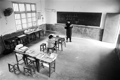 1月2日,在湖南省邵陽(yáng)市隆回縣南岳廟鎮(zhèn)造端小學(xué),教師曾娟在給學(xué)校唯一的學(xué)生范同學(xué)上課。今年33歲的曾娟大學(xué)畢業(yè)后考入當(dāng)?shù)亟處熅幹?,被分配到造端小學(xué)任教。2012年9月剛到學(xué)校時(shí),學(xué)校還有60多名學(xué)生、3名教師。近幾年來(lái),隨著農(nóng)村人口出生率下降、大量農(nóng)民工帶著子女外出務(wù)工以及城鎮(zhèn)化進(jìn)程提速,村小生源越來(lái)越少。目前,造端小學(xué)僅有一名二年級(jí)學(xué)生。