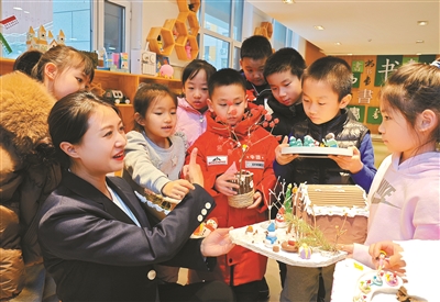 1月3日,吉林省長(zhǎng)春高新技術(shù)產(chǎn)業(yè)開發(fā)區(qū)慧仁學(xué)校教師劉群對(duì)學(xué)生的冰雪創(chuàng)意手工作品進(jìn)行點(diǎn)評(píng)。這是該校組織的“第六屆冰雪文化藝術(shù)節(jié)”活動(dòng)之一。本報(bào)記者 張學(xué)軍 攝