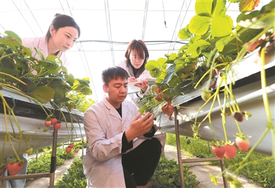 1954年,沈陽農大在全國率先組建草莓研究團隊,研究選育中國自己的好品種。之后,團隊選育出“綠色種子”品種,這是我國正式審定的第一個草莓品種。2014年,沈陽農大張志宏團隊通過雜交育種選育出具有自主知識產權的優質抗病草莓品種“艷麗”。該品種具有果形漂亮、風味濃郁、果實耐貯運等優點。近年來,“艷麗”草莓已逐漸成為我國栽培面積最大的自育品種。