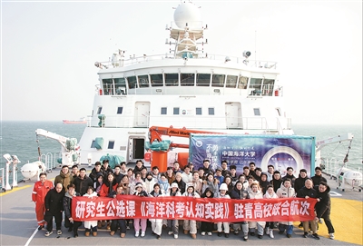 從2020年開始,每年秋季學期,中國海洋大學研究生院都會面向全校和其他高校及科研院所的研究生,推出為期兩天一夜的中國海洋大學“海洋科考認知實踐”公選課。公選課消息一經發布,就會被守在電腦前的學生“一搶而空”。這門課至今已經開展40余批次,來自全國20余所高校和科研院所的4000余名師生登船學習。