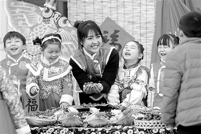 1月17日,在浙江省湖州市德清縣武康街道千秋幼兒園,教師向小朋友介紹做臘八粥所選用的食材。當(dāng)日,該園開展“萌娃學(xué)民俗 開心迎臘八”活動(dòng),小朋友通過認(rèn)食材、做臘八粥、印福字等民俗活動(dòng),感受中國(guó)傳統(tǒng)文化的獨(dú)特魅力。 王正 攝