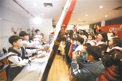 “娃娃廟會,娃娃做主。娃娃廟會,娃娃來辦。”天津市少年兒童活動中心主題教育活動部黨支部書記、副部長彭媛媛介紹,廟會開幕前,中心就向全市兒童征集奇思妙想,讓娃娃廟會更具兒童特色。“今年的娃娃廟會有三大亮點。一是時間更長了,從過去的2天延長到4天。二是突出‘老字號’,讓孩子們感受傳統(tǒng)文化。三是體現(xiàn)沉浸感和互動性,打造舊時街景,讓孩子們可以動手體驗。”彭媛媛說。