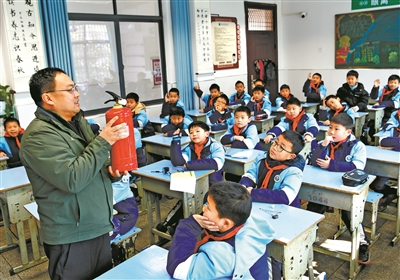 1月23日,湖北省宜昌市秭歸縣實(shí)驗(yàn)小學(xué)教師在給學(xué)生們講授滅火器的使用方法。當(dāng)天,秭歸縣實(shí)驗(yàn)小學(xué)舉行主題活動(dòng),學(xué)生們學(xué)習(xí)用電安全知識(shí)、滅火器使用以及救護(hù)包扎方法,進(jìn)一步增強(qiáng)安全意識(shí),提高自護(hù)自救能力。王輝富 周亭階 攝