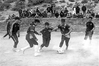 如今,嘎瑪群美從西藏民族大學體育專業畢業,回鄉成為一名小學體育教師。喜歡踢球的孩子越來越多,家長也都希望有一座寬闊平整的球場供孩子們運動。于是,已為人父的嘎瑪群美與村里的其他爸爸們帶頭翻新場地,組織球賽。終于,今年比賽如期在翻新后的球場舉行,吸引了周邊12支隊伍參加。一場鄉村足球賽成為這座藏東小鎮的“世界杯”。