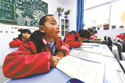 ②積石山縣石塬鎮肖紅坪小學的學生在上數學課。新華社記者 郎兵兵 攝