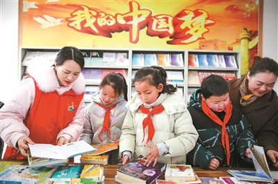 2月27日,在江蘇省如皋市下原鎮花園小學,閱讀推廣志愿者向學生介紹好書。如皋市少兒圖書館聯合下原鎮,在花園小學開展公益閱讀活動,為學生們捐贈200冊愛心圖書,鼓勵鄉村兒童多讀書、讀好書。