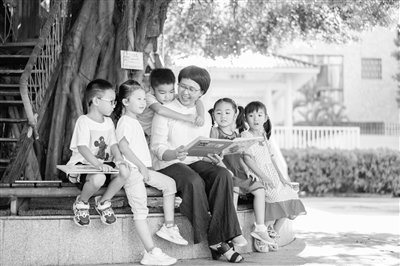 她和孩子們在海灘邊一起奔跑,一起聽大海的歌唱;在榕樹下講故事,在陽光下找影子,一起捉迷藏;孩子們用芭蕉葉做小道具,用長板凳做蹺蹺板……每一個孩子的臉上都是燦爛的笑容,眼里都有明亮的光芒。