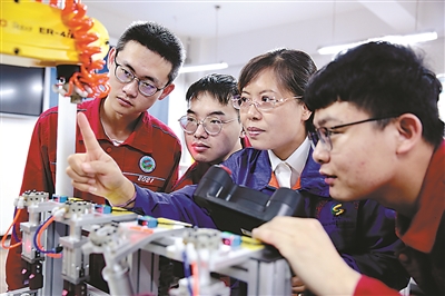 “老主任裴炳文30年扎根數(shù)控,退休返聘后,經(jīng)常加班加點給師生做指導(dǎo)。”“骨干教師郭海青為更好了解企業(yè)需求,主動到寧波工廠鍛煉一年。他帶學(xué)生參加數(shù)控機床裝調(diào)與升級改造賽項,連續(xù)5年獲全國一等獎。”……李粉霞最得意的是他們有一支優(yōu)秀的團隊,團隊成員的故事她如數(shù)家珍。