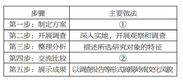 以2023年3月廣州一模考試第5題為例:南粵中學(xué)組織同學(xué)們分組合作開展嶺南文化調(diào)查研究活動。請根據(jù)材料一,借鑒費(fèi)孝通先生的研究方法,完成以下表格。(4分)