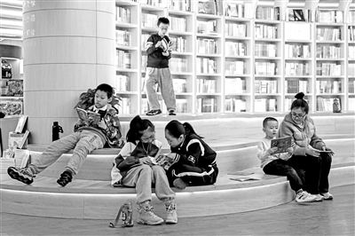 3月24日,小朋友與家長在呼和浩特市回民區的新華書店(中山路店)閱讀。