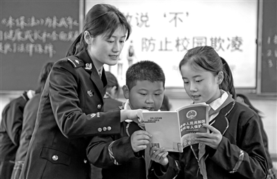 近日,江蘇省海安市公安局城西派出所民警為學生講解未成年人保護法。城西派出所開展“法治宣傳進校園 普法教育護成長”活動,民警走進當地高新區仁橋小學,引導學生知法守法,增強自律自護意識。周強 攝