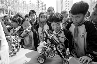 近日,河北省邯鄲市復興區人民小學操場,學生們在體驗智能機器人。當日,學校科技節開幕。本次科技節以“智慧啟航、科技筑夢”為主題,涵蓋了多個科技領域,包括機器人競賽、科學實驗展示、科技大篷車等。學生們在參與實踐中感受到了科技的魅力和力量,拓寬了視野,增長了知識。