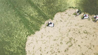 6年來,武漢大學(xué)教授于丹帶領(lǐng)30多名博士、碩士研究生相繼在大通湖開展科研工作。如今的大通湖,從中央深水區(qū)向岸線依次構(gòu)建了“沉水—浮葉—挺水”三級植被帶,依靠水生植物的凈化,大通湖水質(zhì)提升到了Ⅳ類,水生植被覆蓋面積穩(wěn)定在5萬畝左右,隨著生物多樣性的提高,生態(tài)系統(tǒng)穩(wěn)定發(fā)展,大通湖重現(xiàn)了“春和景明,一碧萬頃”的景象。