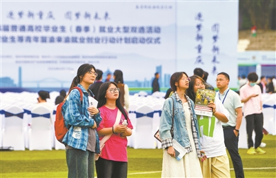 當日,重慶市2024屆普通高校畢業生(春季)就業大型雙選活動暨百萬高校畢業生等青年留渝來渝就業創業行動計劃啟動儀式在重慶大學舉行。來自重慶市70余所高校的一萬多名畢業生參加現場雙選活動。